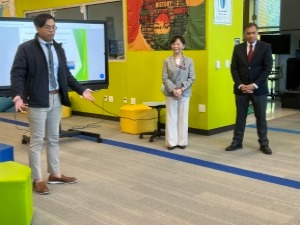 此次金城銀行由資深副總裁Derrick Nguyen, 貸款部第一副總裁Ivan Zhu、公關部第一副總裁Terry Hou暨百利分行營業部副總裁Vicky Wang共同講解,感謝他們為青年學子理財規劃跨出第一步。